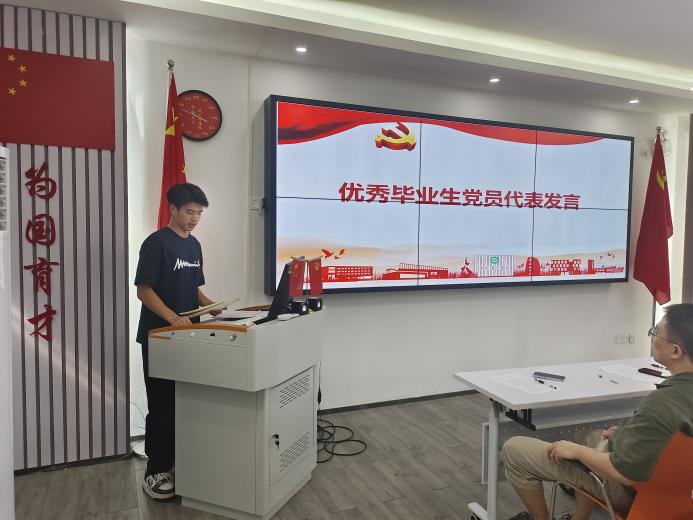 接下来,由毕业生党员代表徐伟明、万俊宇和刘德培三位同志通过结合大学四年经历,为在校学生党员分享个人的心得体会并提供了自己的经验,强调在工作岗位上争做先锋、在深造学习中争做标兵,让青春在全面建设社会主义现代化国家的火热实践中绽放绚丽之花。