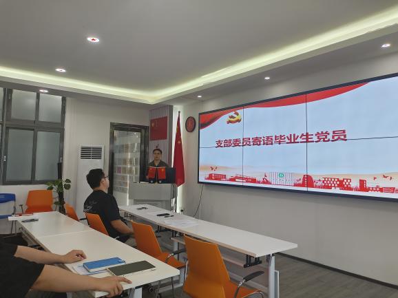 首先支部书记苏朗同志以“学党纪知敬畏,守诚信铸未来”为主题,结合《中国共产党纪律处分条例》学习和毕业生行前教育与党纪学习教育,以树立清廉节俭意识为切入点,引导即将离校走上社会的毕业生党员端正职业道德意识、心怀感恩之心、牢记入党初心,鼓励毕业生党员坚定理想信念、脚踏实地、爱岗敬业、甘于奉献,做到“一心向党、一身正气、一步一个脚印”。过去学生党员是学院的优秀学生代表,将来也要成为各自事业的“领头雁”。同时,要在文明离校时争做榜样、在工作岗位上争做先锋、在深造学习中争做标兵,怀抱梦想又脚踏实地、敢想敢为又善作善成。