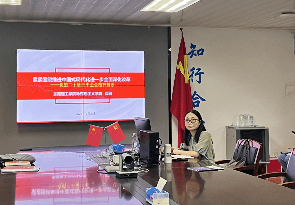 9月12日下午,yl23455永利集团召开党的二十届三中全会精神宣讲会,邀请马克思主义学院邓雨老师作宣讲报告。党委书记兰善红主持,学院和生态中心全体教职工参加宣讲会。