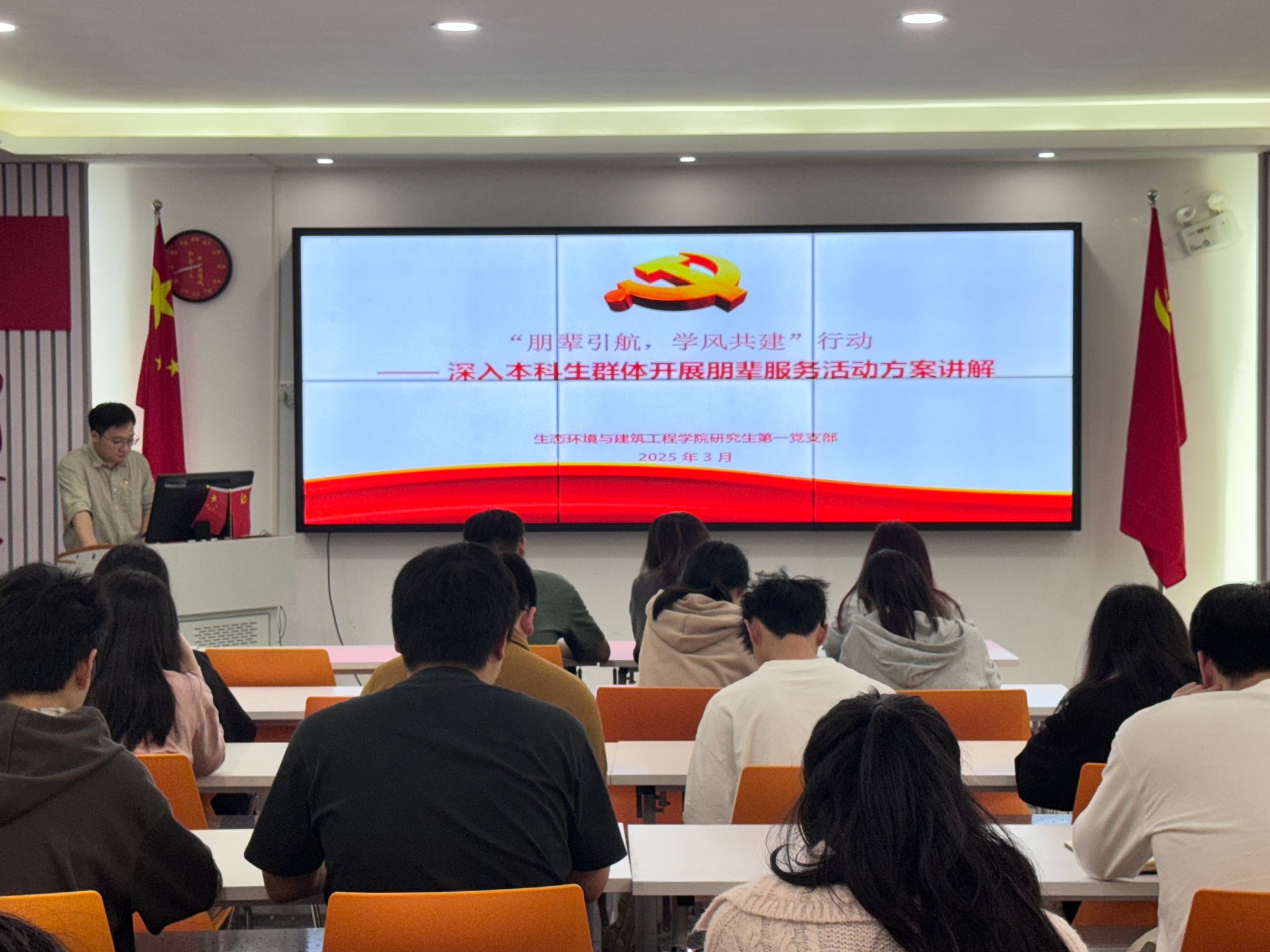 2025年是学校“十四五”发展规划的收官之年和全面深化改革纵深推进的关键之年。在环建学院党委领导下,研究生第一党支部将主动作为,并以更坚定的决心和信念,为推进学校“申博”“更大”和实施“服务支撑东莞高质量发展专项行动”等重大关键任务,为学校“十四五”发展规划的完美收官、全面深化改革取得决定性胜利和实现新型高水平理工科大学建设取得新突破,贡献研究生党员的特质力量。在研究生第一党支部与本科生23级各班级团组织“党团联建”的良好基础上,支部计划在2025年上半年实施主题为“朋辈引航,学风共建”的深入本科生群体开展朋辈服务行动。