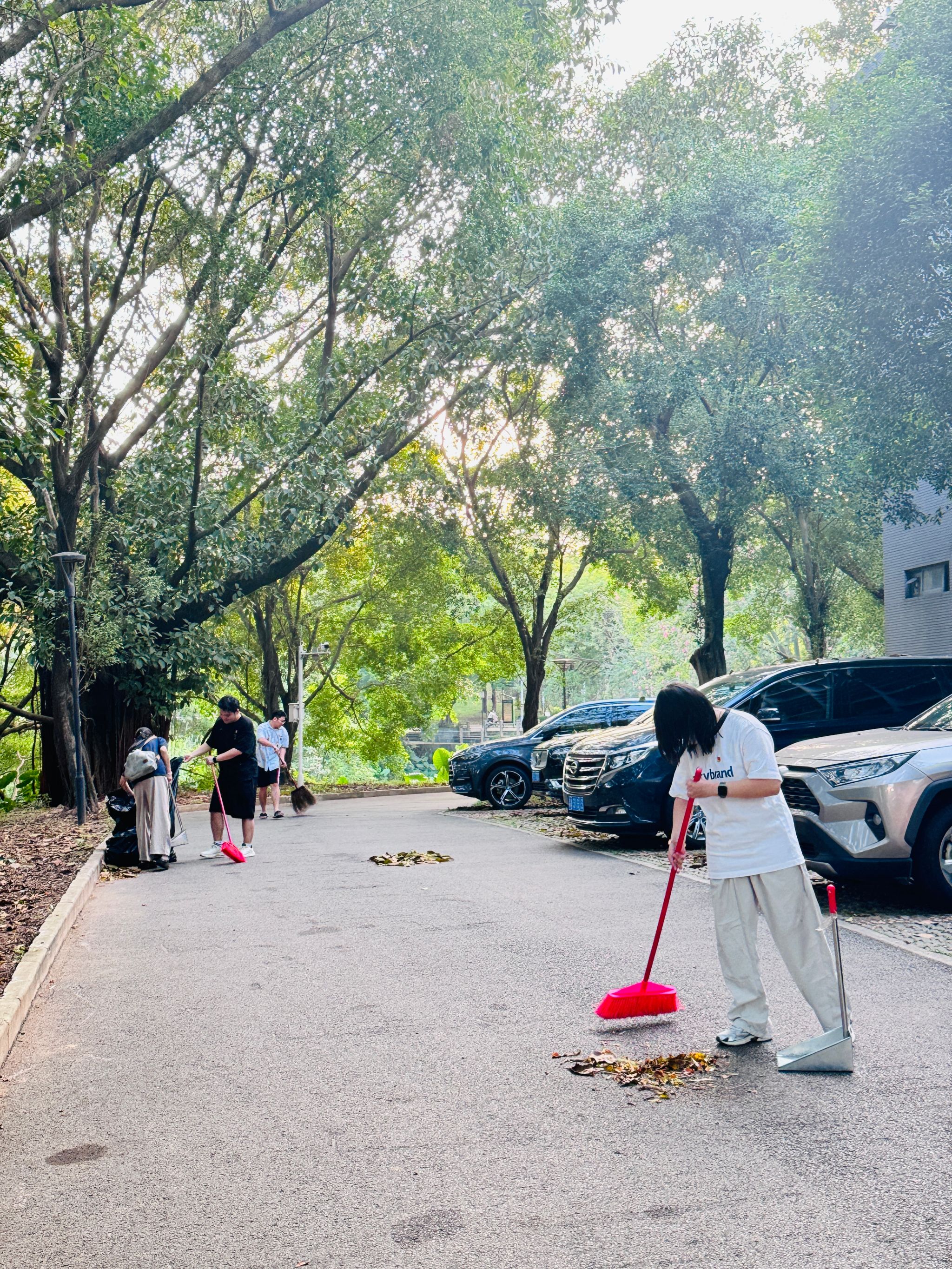 美丽校园不是说出来的,而是踏踏实实干出来的。学校开展爱国卫生运动,基层党支部积极响应号召,在此次爱国卫生运动中,研究生党员发扬先锋模范带头作用,冲锋在前,支部整体分为三个行动小组,对活动所在场域进行分区清洁。在活动现场,党员同志们热情高涨、干劲充足,分工合作、默契配合,在大家团结协作下,场域面貌焕然一新。
