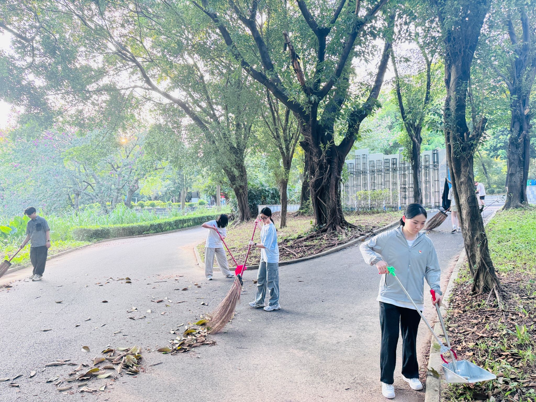 为进一步加强价值引领,支撑学校“两热”防控工作,保持广大师生日常活动的环境整洁安全,2025年10月11日,学院研究生第一党支部响应学校爱国卫生号召,开展了“党员冲锋在前,打好‘两热’防控战”劳动主题党日活动,引导学生树立正确的劳动观和科学的防疫意识,为营造美丽校园、打好“两热”防控战贡献青春力量。