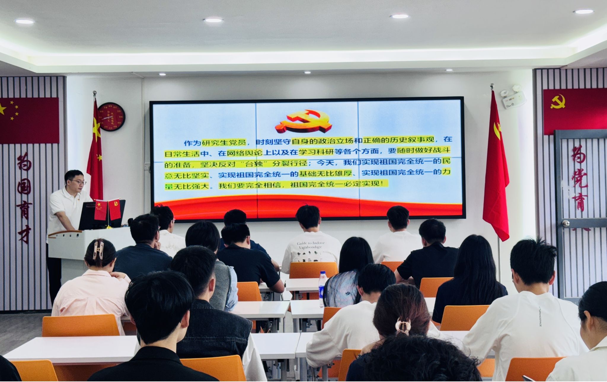 党课提到,会议还明确了在全面建设社会主义现代化国家新征程上推动两岸关系和平发展、推进祖国统一大业的目标任务,这体现了对台工作在强国建设、民族复兴进程中的战略定位,为做好新时代对台工作开辟广阔空间,提供强劲动力,具有重要指导意义。研究生党员作为青年一代,要坚定相信,也必须坚定支持,时刻坚守自身的政治立场和正确的历史叙事,在我们的日常生活中、在网络舆论上、在学习科研工作等各个方面,要随时做好战斗的准备,旗帜鲜明地、坚定不移地反对“台独”分裂行径;今天,实现祖国完全统一的民意无比坚实、实现祖国完全统一的基础无比雄厚、实现祖国完全统一的力量无比强大,我们要完全相信,祖国完全统一必定实现!