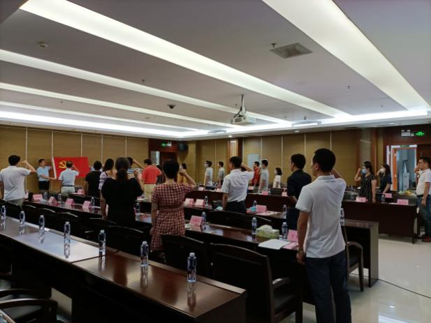 在老党员刘洪涛老师领誓下,大家一起重温了入党誓词,铮铮誓言表达了党员同志立德树人的拳拳之心。