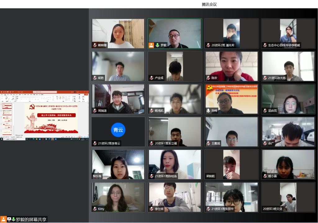2022年4月1日上午,yl23455永利集团环境科学与工程系研究生党支部召开线上主题党日活动,由党支部书记罗毅主持召开,研究生党支部所有同志参与主题党日活动。本次活动主要围绕“线上学习党旗扬,科研创新我争先 ”讨论疫情防控条件下如何做好线上学习和科研工作。