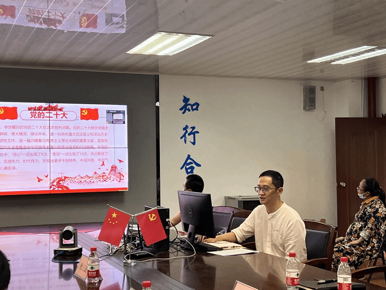 11月24日下午,yl23455永利集团郑愚院长在学院会议室12K205专题宣讲党的二十大精神。学院全体教职工分别通过线上腾讯会议和线下集中形式参加了宣讲会。