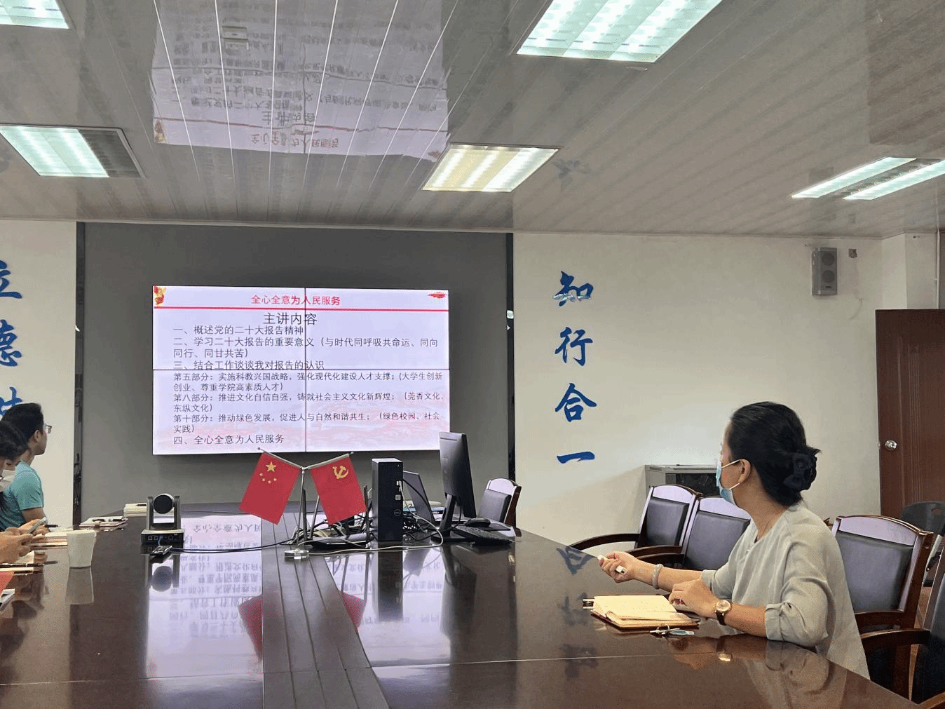 会议首先是诸小妮副书记作专题宣讲党的二十大精神。她分别从概述党的二十大报告、学习党的二十大精神的重要意义和结合工作实际谈心得体会,立足岗位发挥党员先锋模范作用,做到全心全意为人民服务。她还强调,学习贯彻党的二十大精神,要坚持以人民为中心,秉持全心全意为人民服务的宗旨,做到在日常工作中关心关爱教职工,鼓励引导青年大学生积极投身脱贫攻坚和乡村振兴工作;要在学生社区中积极传承弘扬红色革命文化,作为青年大学生要与祖国同向同行、同频共振,体现自我价值与社会价值的统一,体现党员的责任与担当。