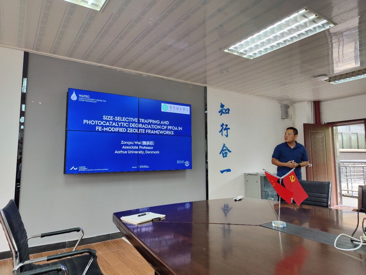 魏宗苏副教授为大家介绍了丹麦奥胡斯大学以及课题组的实验室条件,并详细介绍了课题组在全氟和多氟烷基物质(PFAS)处理技术方面开展的研究工作和丰富的研究成果,从生态和政策等多个角度阐明了PFAS治理上的紧迫性,并总结了PFAS的主流处理方式和课题组所作研究方向的意义。老师、同学们对报告内容以及Water Research等期刊投稿等问题进行了深入交流。