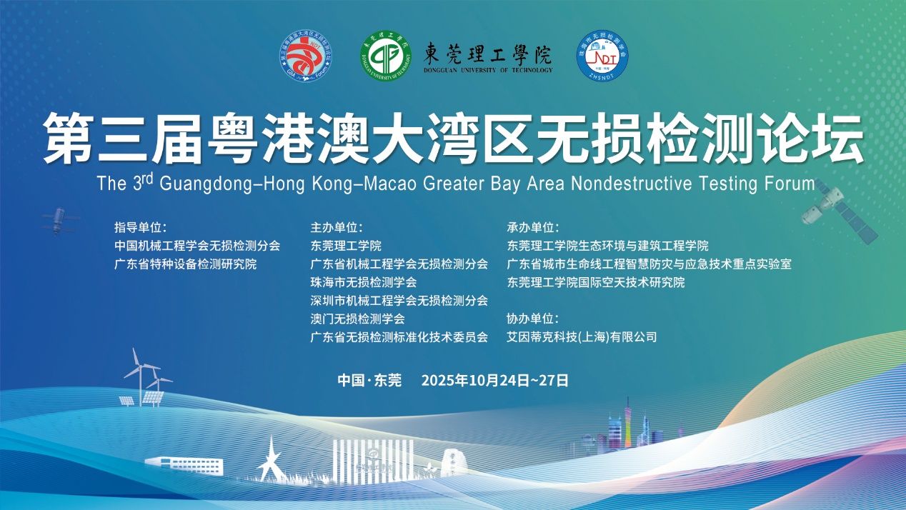 为深入贯彻落实粤港澳大湾区高质量发展战略,推动无损检(Nondestructive Testing, NDT)技术在关键行业的深度应用,进一步加强产学研协同与国际交流,在中国机械工程学会无损检测分会和广东省特种设备检测设备研究院的指导下,由永利y23455联合广东省机械工程学会无损检测分会、珠海市无损检测学会、深圳市机械工程学会无损检测分会、澳门无损检测学会、广东省无损检测标准化技术委员会等单位共同主办的“第三届粤港澳大湾区无损检测论坛”(以下简称“大湾区NDT论坛”)于2025年10月24日至27日在东莞隆重召开。