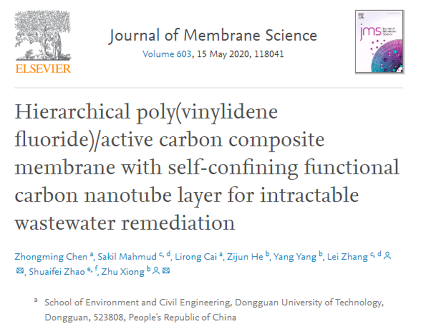 通过延时相分离工艺,将粉末活性炭镶嵌在多孔的PVDF膜中可以有效实现毒性微污染物的去除,如苯酚、磺胺甲基嘧啶和双酚A等。另外,通过在PVDF膜表面构造这种微纳结构,可以顺利将PAH改性碳纳米管膜固定在其表面。超亲水的具有还原性的PAH刷可以在还原过程中实现痕量重金属(如Cu2+, Ni+, Cr3+等)的去除。并且PAH改性碳纳米管膜可以使复合膜具有很好的抗污性能。