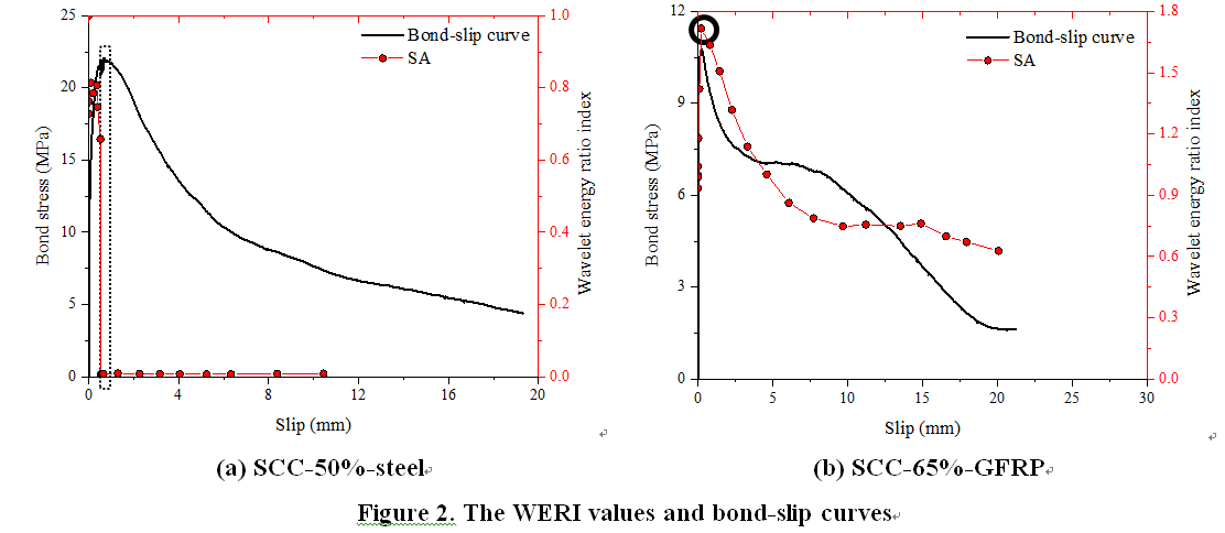 该成果通过将一个压电陶瓷片贴在FRP筋表面,一个智能骨料埋置在SCC里面构成一个主动传感监测体系。采用主动传感监测技术实现FRP筋与SCC界面损伤识别。此外,提出一种小波能量比指数(WERI)能够准确捕捉粘结应力峰值及有效识别FRP筋与SCC界面损伤机理。该研究的开展证实了采用压电传感器识别FRP筋与SCC界面粘结损伤的可行性,为界面损伤监测提供了新思路和方法。