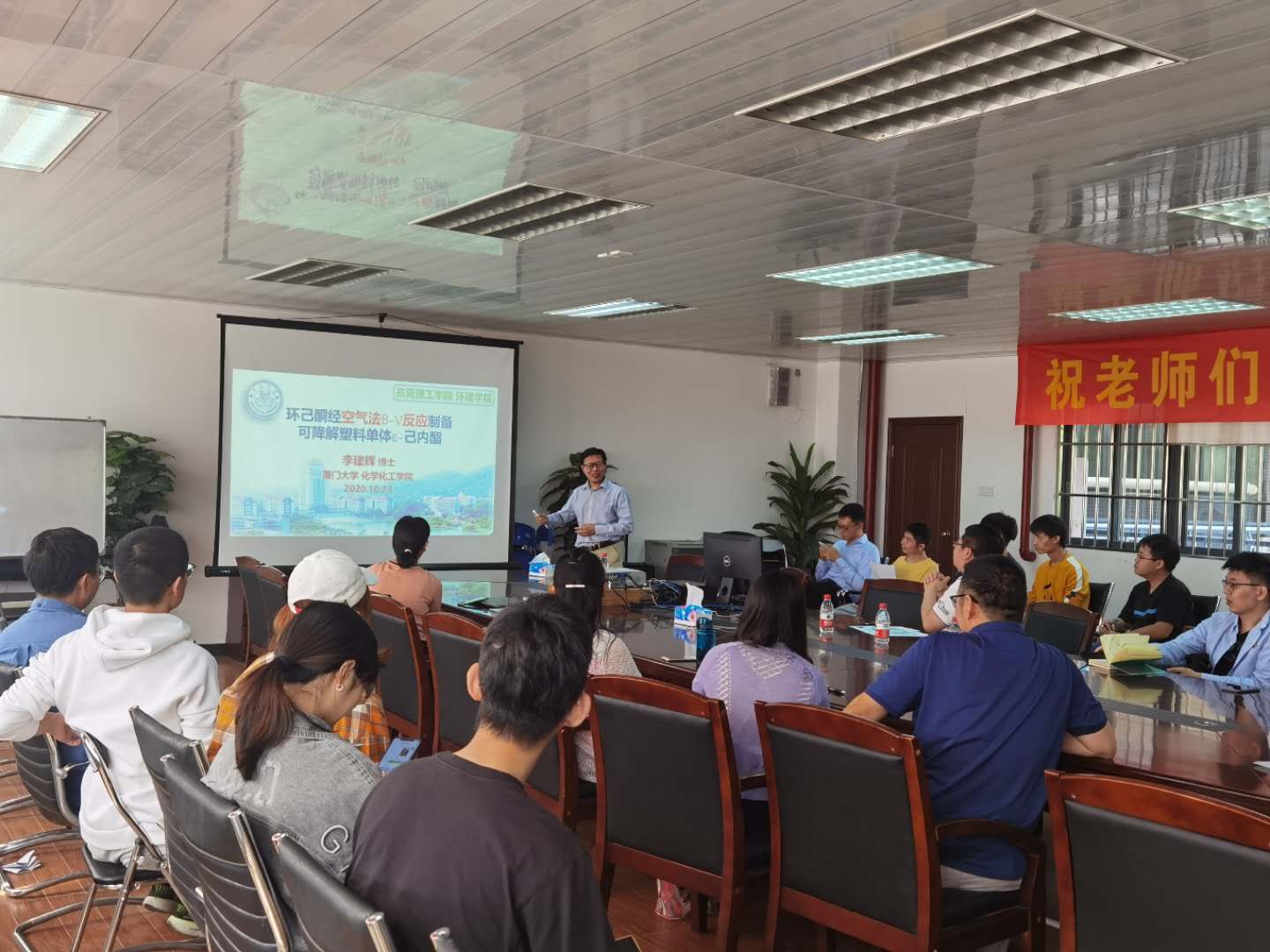 10月23日上午,李建辉博士在我院做了题目为“环己酮经空气法B-V反应制备可降解塑料单体ε-己内酯”的学术报告以及与青年教师分享“国家自然科学基金申请经验与技巧”。