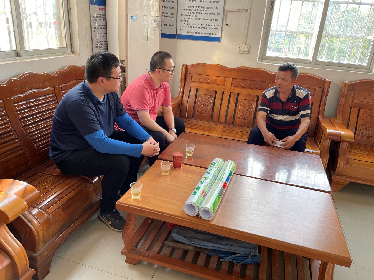 2021年4月22日,农村科技特派员团队三人来到云浮市云城区前锋镇,与镇委镇政府负责人进行了会面讨论,制定了下一步科技助农的工作计划,并在相关工作人员的安排下,与前锋村委及矮岭村委的新一届村委领导进行了工作对接。特派员团队向两个村委赠送了垃圾分类回收的宣传海报共40份,助力两个村委进行创建文明乡村工作。