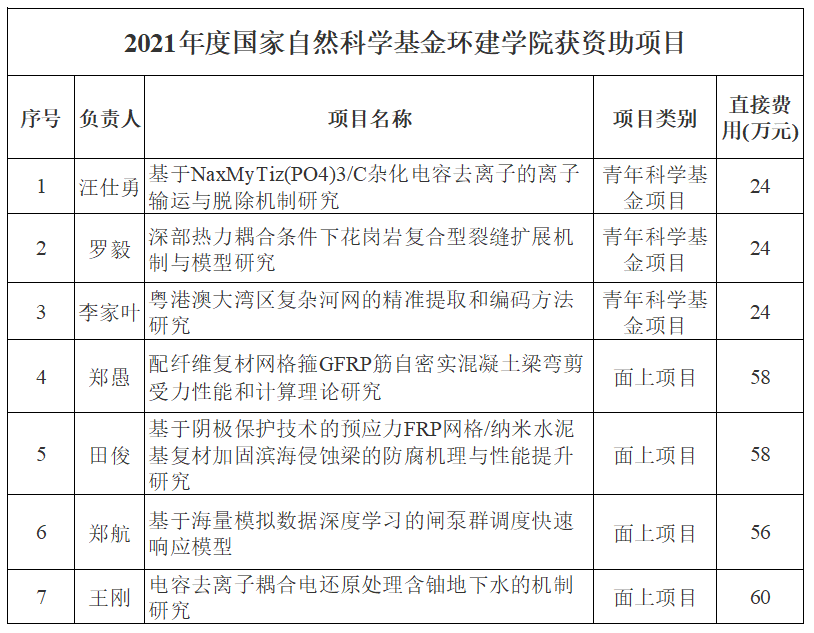 2021年8月18日,2021年度国家自然科学基金项目评审结果正式揭晓,根据本次公布的结果显示,我院喜获资助项目7项,其中面上项目4项,青年基金项目3项。相比2020年度获得资助7项青年基金项目,本年度我院获面上项目的数量居校内第1位,说明我院青年教师在获得青年基金后得到进一步的发展提高,是学院人才引进青年教师逐步成长的标志,希望以前拿过青年基金的老师要提前准备,开始准备新一轮基金申报,形成科研项目的可持续性立项!再次祝贺获得立项资助的各位老师!