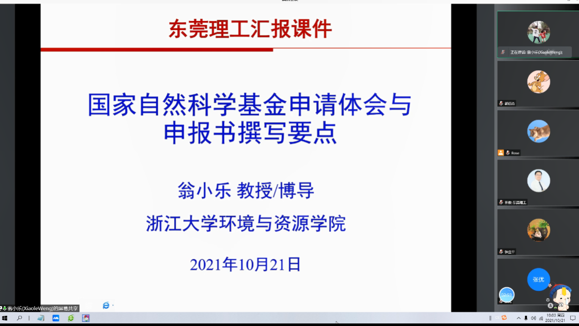 10月21日上午,浙江大学翁小乐教授通过线上形式为我院教师做了题为“国家自然科学基金申请体会与申报书撰写要点”的报告。