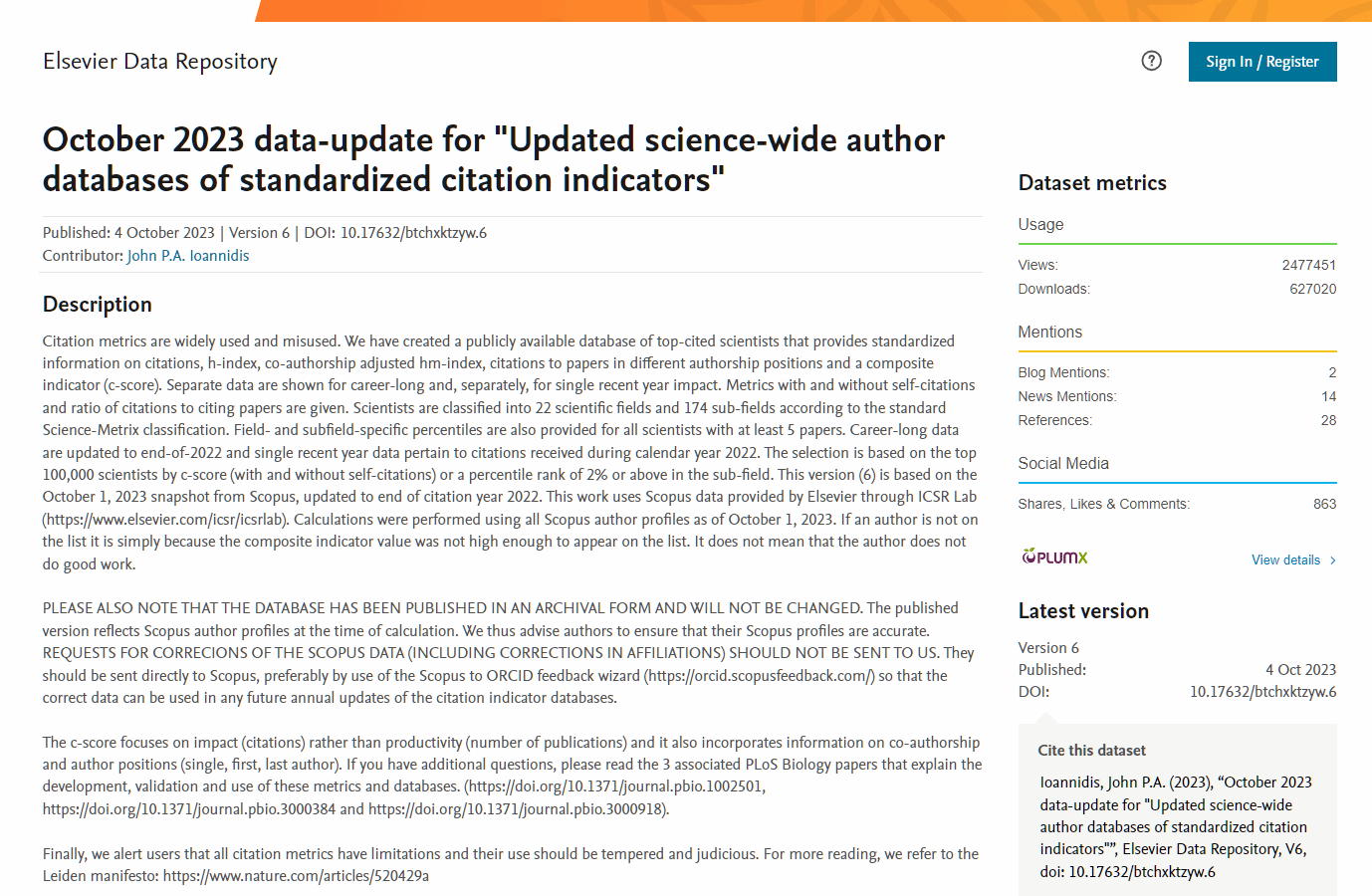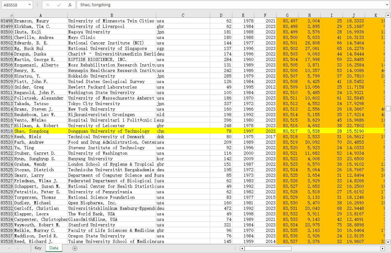 据悉,全球前2%顶尖科学家榜单是Elsevier与斯坦福大学John P. A. Ioannidis教授团队合作的项目成果,发布在Elsevier旗下的Mendeley Data网站上。榜单基于Scopus数据库的引用数据系统分析,以被引数(区分自引和他引,提供自引数据)、H指数、HM因子等6种综合指标(composite score,C-score),并根据“生涯影响力”和“年度影响力”从近700万名科学家中遴选出世界排名前2%的科学家,分为22个领域和174个子领域。为科学家长期科研表现提供了一个衡量指标,能够更客观、更真实地反映科学家的影响力。