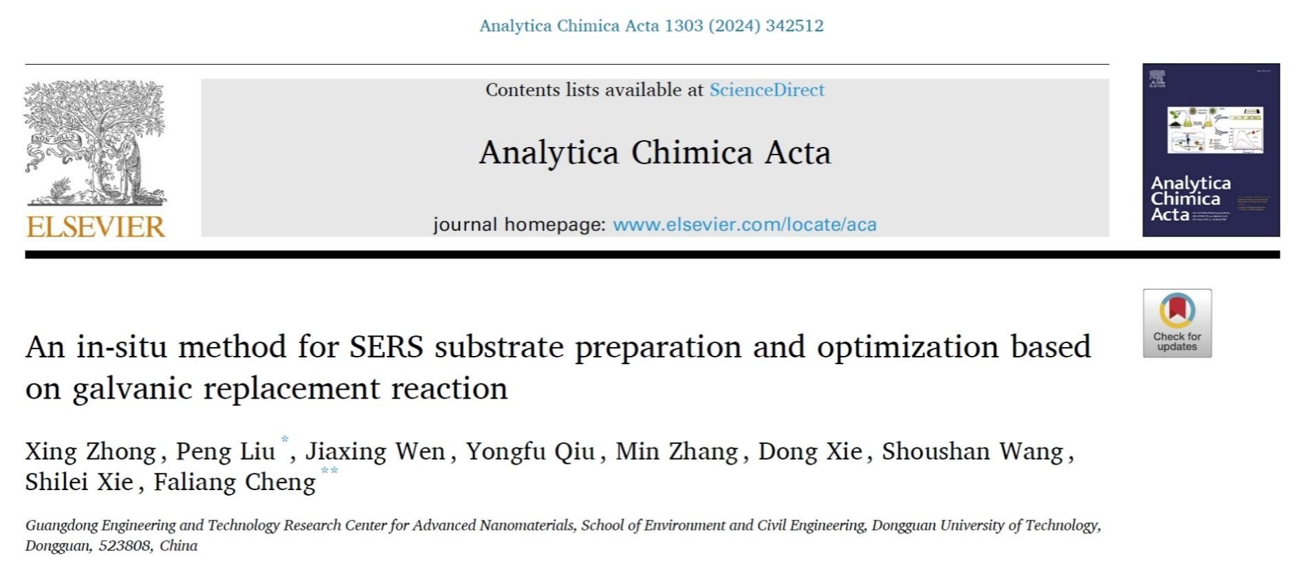 我院广东省新型纳米材料研究与应用工程技术研究中心在表面增强拉曼光谱(SERS)技术的应用方面取得了重要进展。该研究由2021级硕士研究生钟兴等人共同完成,研究成果以题为“An in-situ method for SERS substrate preparation and optimization based on galvanic replacement reaction”的论文发表在国际期刊《Analytica Chimica Acta》(IF = 6.2,中科院分析化学一区TOP期刊)上。该论文第一署名单位为yl23455永利集团,钟兴是该论文的第一作者,中心程发良教授和柳鹏副教授为论文的共同通讯作者。
