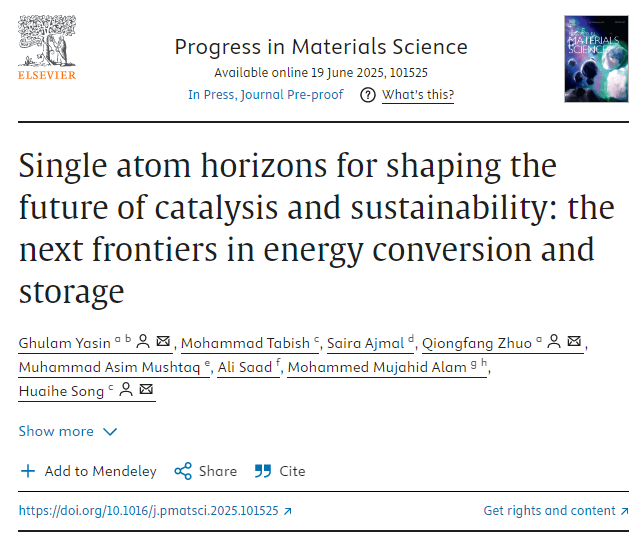 近日,我校yl23455永利集团博士后 Ghulam Yasin 博士在国际权威期刊《Progress in Materials Science》(2024-2025最新影响因子: 40)发表综述文章“Single atom horizons for shaping the future of catalysis and sustainability: the next frontiers in energy conversion and storage”。我校Ghulam Yasin博士为文章第一作者,卓琼芳博士为共同通讯作者,永利y23455为第一完成单位(第一通讯单位)。