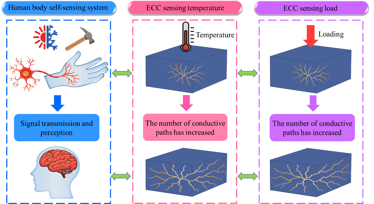 图1  温度与荷载耦合作用下自感知ECC的自感知机制示意图