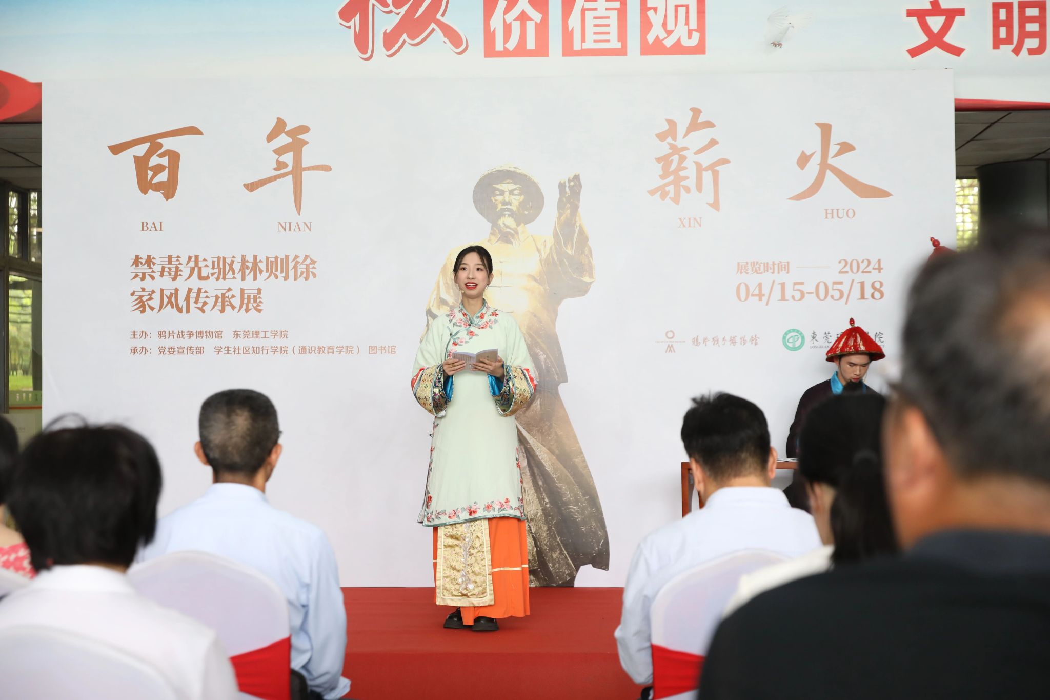 活动主旨之二,在于带领支部党员深入贯彻落实习近平总书记在二十届中央纪委三次全会上的重要讲话精神,同时引导大学生积极宣传廉洁理念、廉洁典型,营造崇廉拒腐的良好风尚。今年是虎门销烟185周年,东莞是虎门销烟这一中国近代史重要历史节点的发生地;学校从东莞虎门鸦片战争博物馆引进了“百年薪火——禁毒先驱林则徐家风传承展”到校展出,既是一场精彩的历史文化展览,也是一堂生动的党风廉洁教育课;这为支部引领青年朋辈提供了良好场域和契机。组织现场研学,对于引导青年同志吸收林则徐家风家训的有益成份,融入到个人的日常生活,促进自身健康成长和全面发展,以家风建设促进党风学风建设,极为有益。
