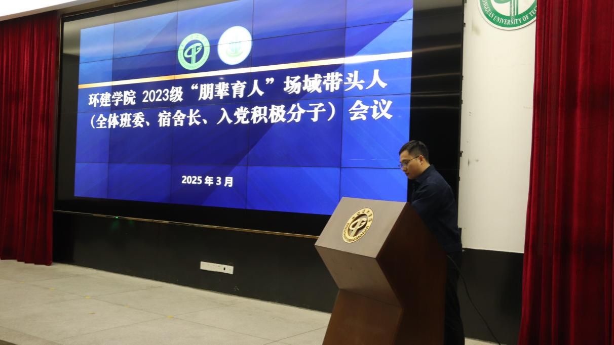 为持续筑牢23级“朋辈育人”主体力量,充分激发学生身边的“带头人”朋辈育人场域效应,在大学生“自我教育、自我管理、自我服务、自我监督”理念构建的各个环节中注入驱动活力,提升大学生的综合素质,营造环建23级积极向上、互助共进的学风文化氛围,助力莘莘学子在成长之路上稳步前行。2025年3月31日,环建学院组织召开本科生23级“朋辈育人”场域带头人新学期全体会议,23级全体班委、宿舍代表(宿舍长)、入党积极分子等170余人(占年级全体学生人数的50%)参加;会议由学院23级政治辅导员李春志老师主持。