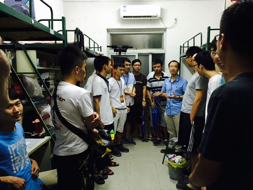 8月30日晚上7点30分,yl23455永利集团辅导员文锦枢走访2014级学生宿舍,随行的有环建学院党总支、团总支、学生会干部代表。
