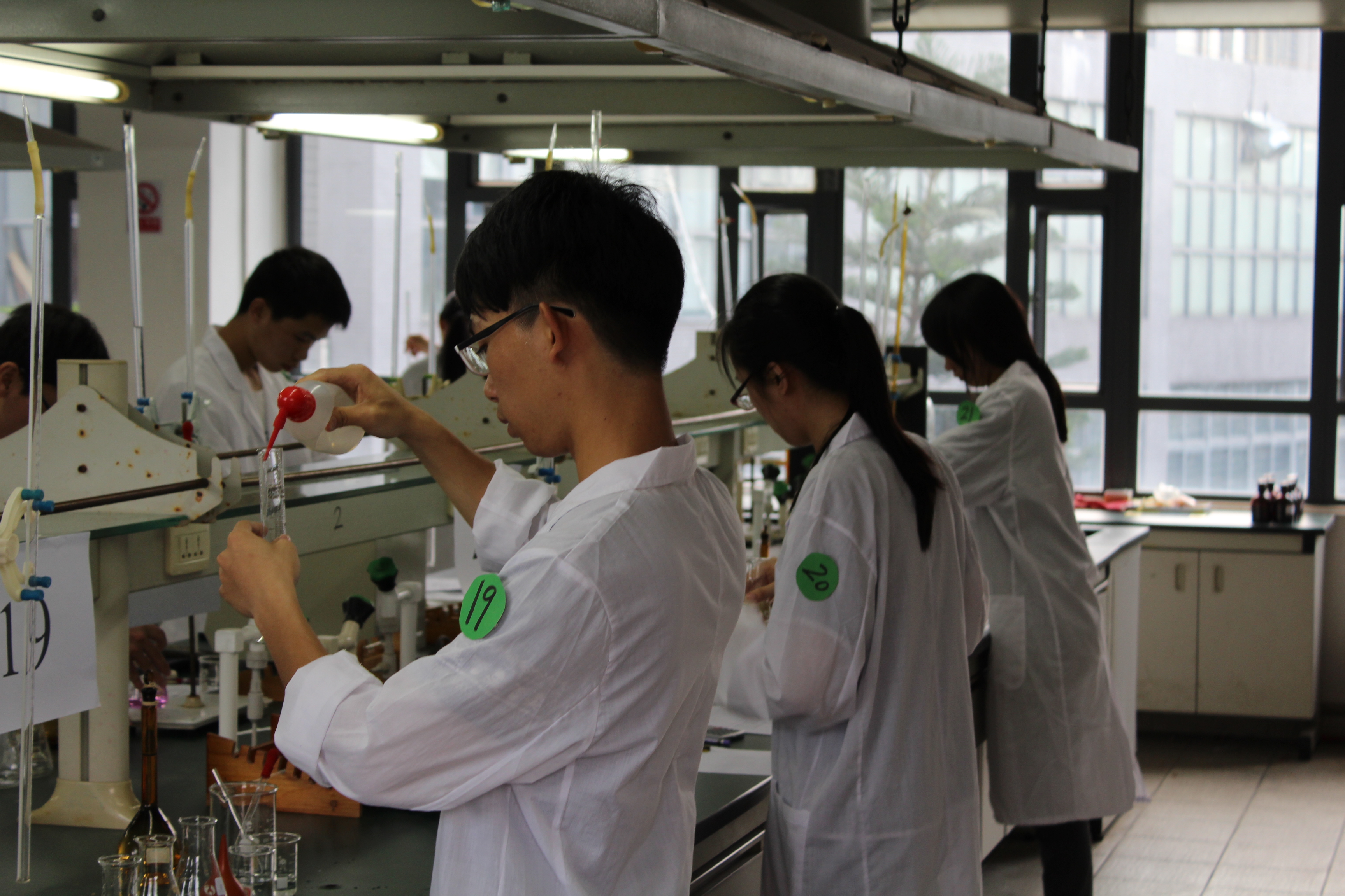 15:00,专业组进行比赛,选手们进入实验室后,都认真分析实验原理、实验步骤,聚精会神,认真完成实验。评委老师与实验室助理认真仔细观看选手的操作,并公平公正地为各选手打分。