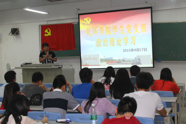 4月17日晚上9:00,环建学院学生党支部在4B410课室召开了政治理论学习大会,学习了2015年永利y23455党建计划和环建学院党总支党建计划,46名学生党员参加了会议,会议由环境、应化党支部书记邓日威主持。