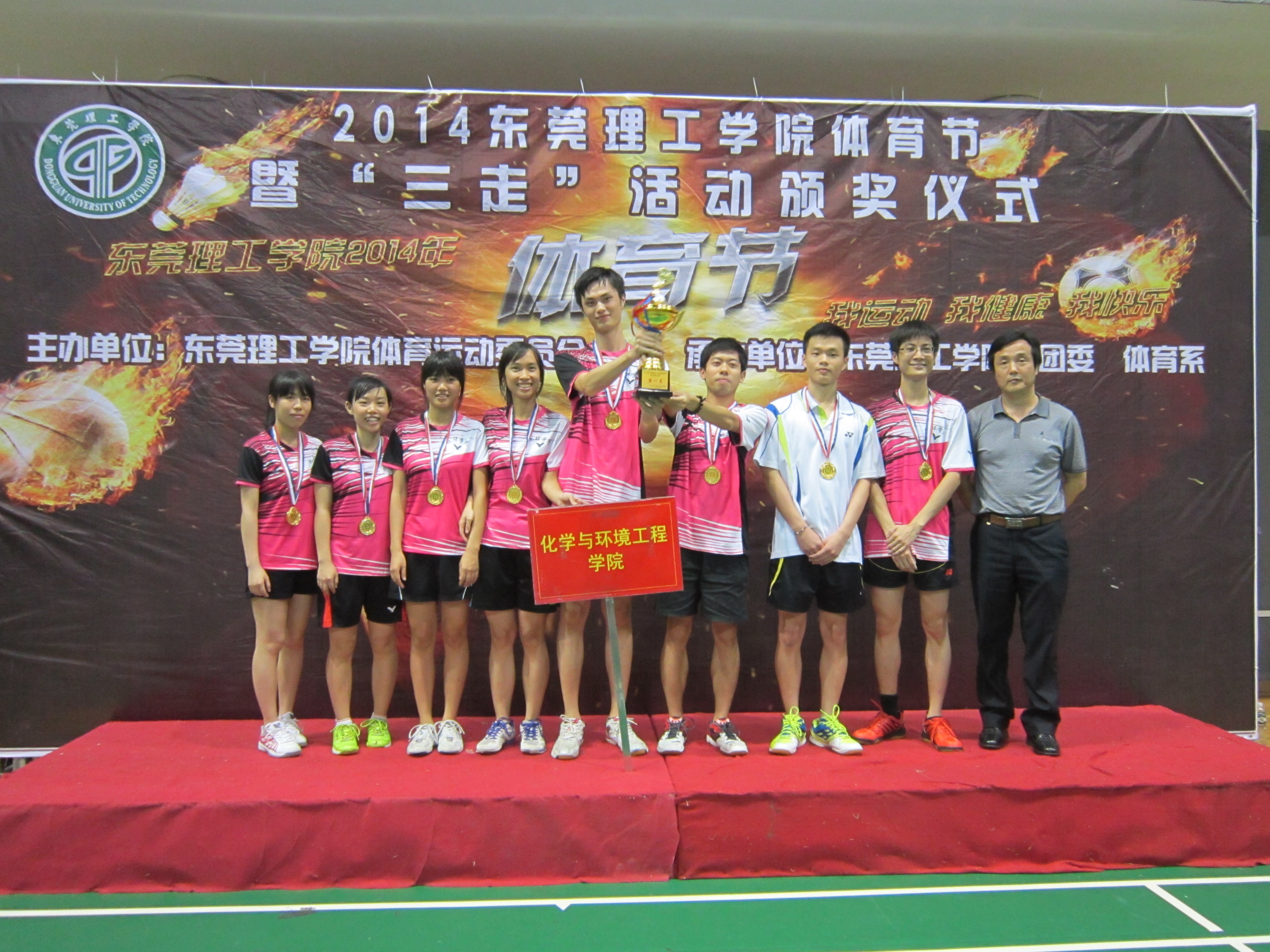 本次羽毛球赛分为男单、女单、男双、女双、混双五个组别。环建学院代表队在小组赛中一路过关斩将,突围而出,顺利晋级。决赛一开始,双方都不甘示弱,环建学院与体育系均拿下两局,最后一局混双成为一决高下的关键。起初,环建代表队稍落后体育系,但是环建代表队改变策略,扭转局势。最后一局以21:16取胜,夺得本次羽毛球赛的冠军。