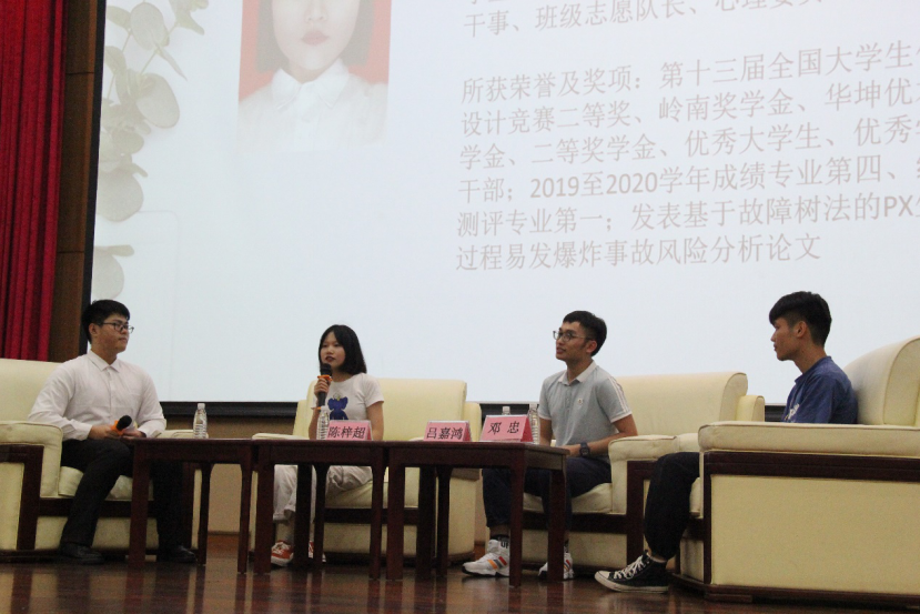2020年10月16日,yl23455永利集团在松山湖校区学术会议中心报告厅举行 “大学有理,劳逸有法”优秀师兄师姐分享会。出席本次分享会的嘉宾有辅导员雷菲,邓忠师兄,吕嘉鸿师兄,陈梓超师姐以及2020级新生。