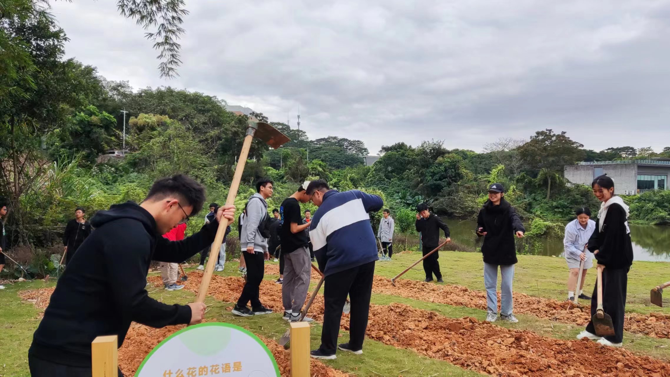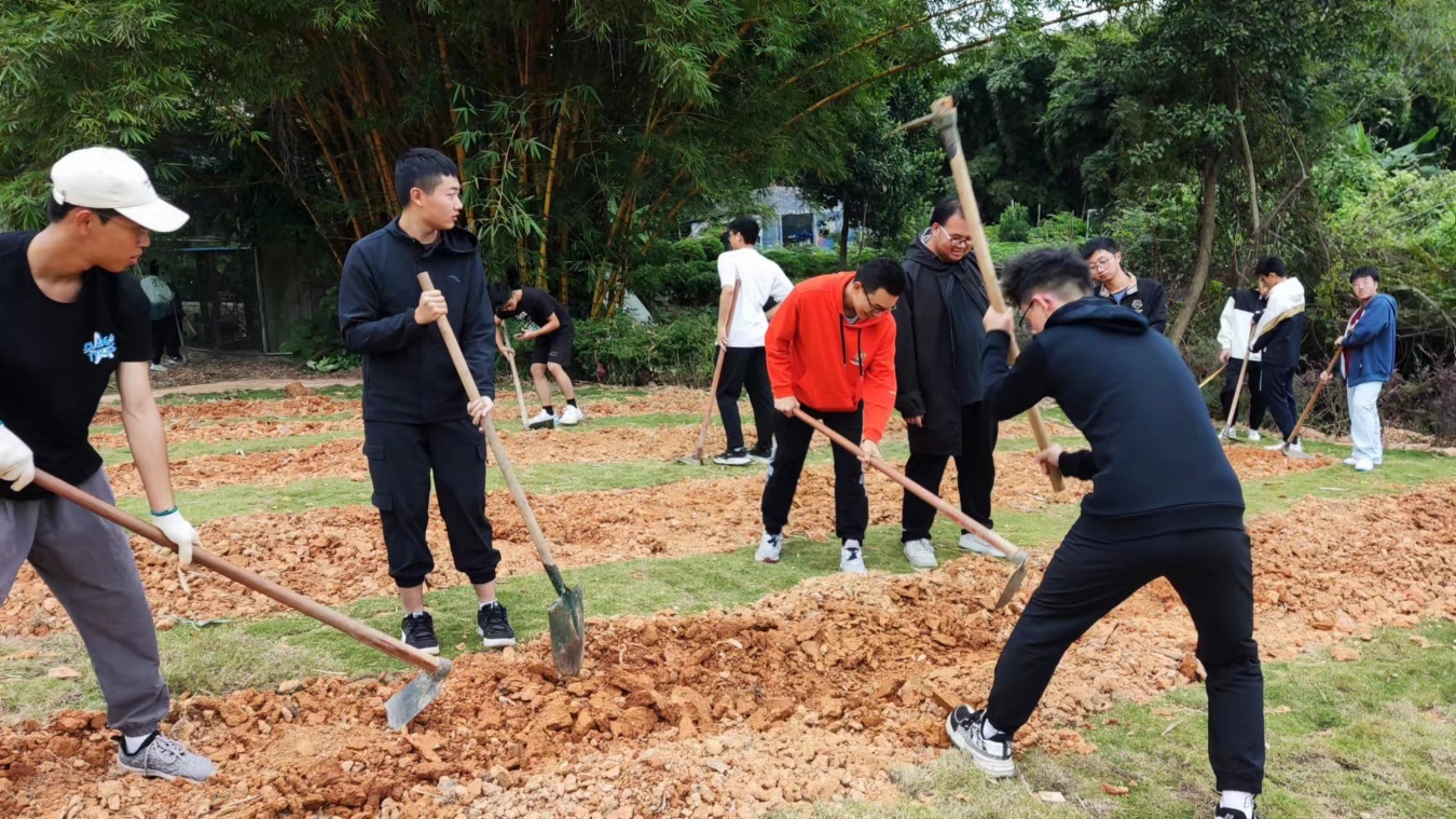 11月16日下午,在学校心理健康教育与咨询中心副主任刘勉老师和环建学院2023年级政治辅导员李春志老师的带领下,环建学院2023级环境工程3班全体学生在松山湖校区学思广场“培根园”开展主题班级活动。李春志老师为同学讲解“培根园”劳作事项,刘勉老师为同学示范锄地、松土及撒黑壤,同学们积极参与劳作。在师生共同参与劳作的过程中,同学们也在夯实自身的劳动意识,树立起尊重劳动、热爱劳动、弘扬劳动的品质,以及正确的劳动观念和劳动态度。
