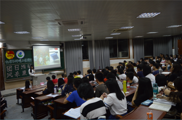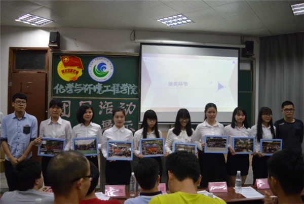2016年4月17日晚7点整,化学与环境工程学院在莞城校区阶梯教室6#1开展了2015-2016年学年度第二学期团日活动表彰大会。本次活动有幸邀请到我院辅导员陈泳源老师,团总支副书记黄森源,团总支委员、学生会副主席吴树鸿等嘉宾。