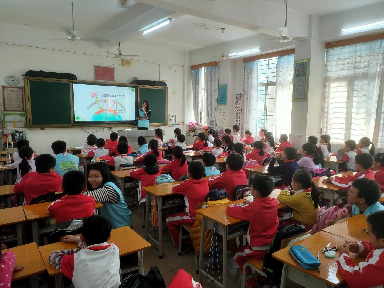 为推广低碳生活,增强小朋友的环保意识,2019年12月12日,yl23455永利集团团委学生会志愿服务站莞昕义教队(以下简称莞昕义教队)联合永利y23455碳普惠校园创客空间在大朗镇宏育小学三年级三班开设主题为“低碳环保,绿色生活”的义教课堂。