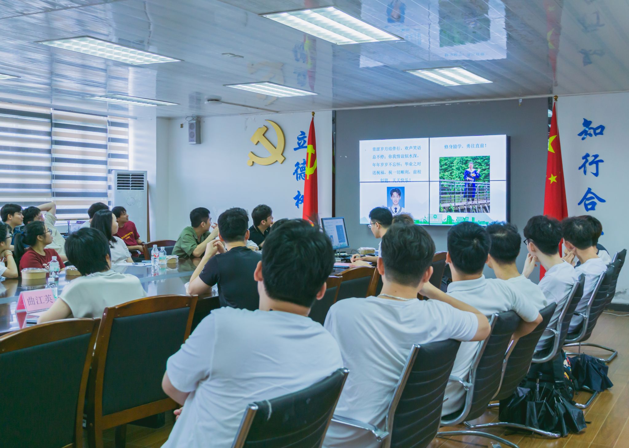 会议开始,“研途记忆”PPT和毕业祝福视频,生动展现了毕业研究生在校期间的点滴瞬间和珍贵回忆,同时表达了对毕业研究生的美好祝愿。