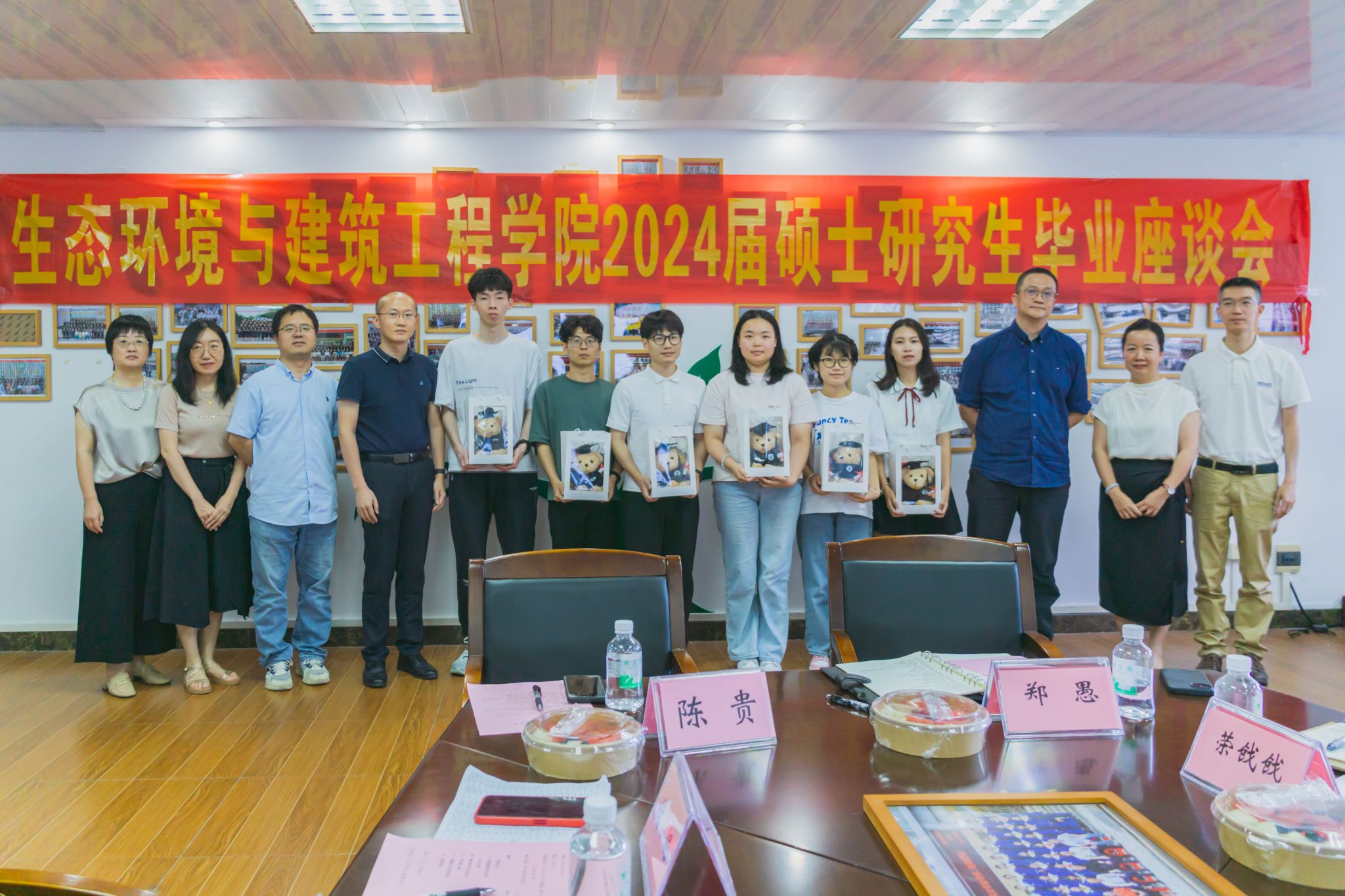6月23日下午,生态环境与建筑工程学院2024届研究生毕业座谈会在12K205举行。学院院长郑愚、副院长陈贵、副院长荣戗戗、党委副书记诸小妮、导师代表曲江英教授、研究生院尹建明老师、研究生教学秘书张文涛老师出席座谈会。毕业年级研究生与领导老师“面对面”交流,“零距离”沟通,为学学校学院发展建言献策。座谈会由研究生辅导员胡胜老师主持。