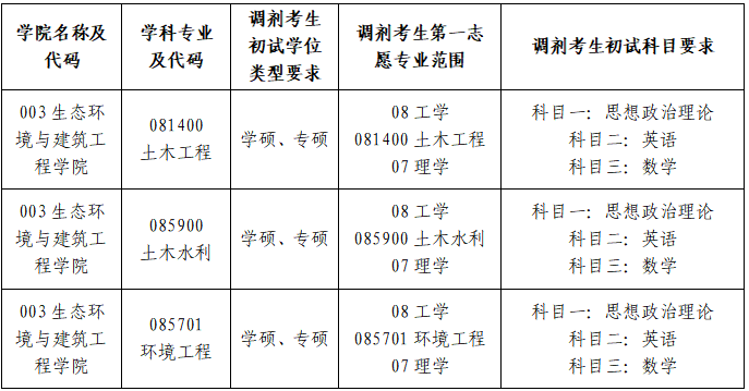 我院2025年硕士研究生土木工程专业(081400)、土木水利专业(085900)以及环境工程专业(085701)招生拟接收调剂考生,具体实施办法如下。