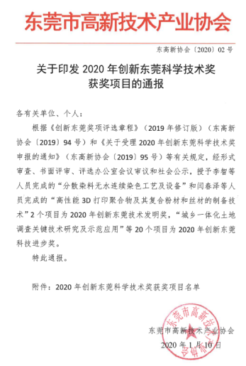 2020年1月10日,东莞市高新技术产业协会正式公布2020年创新东莞科学技术奖评审结果,由我校土木工程学科团队牵头申报的“对非金属筋材桥梁结构工作性能的研究”项目成果荣获2020年创新东莞科技进步奖。