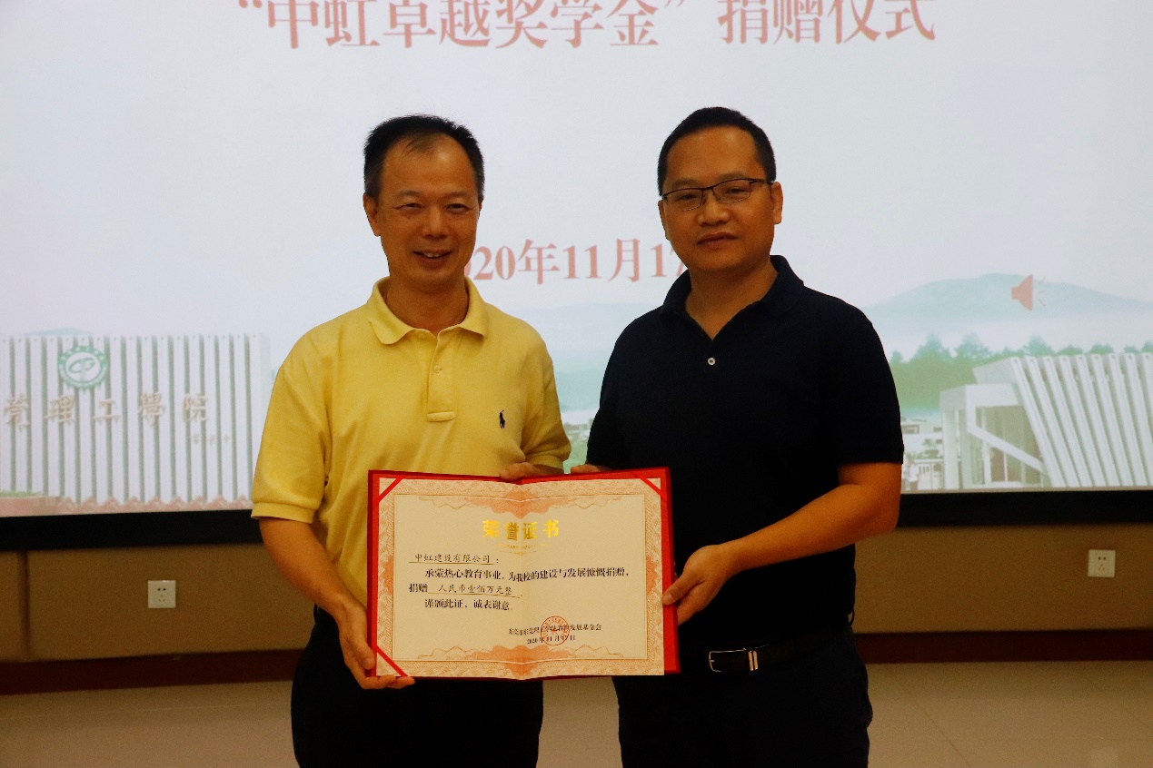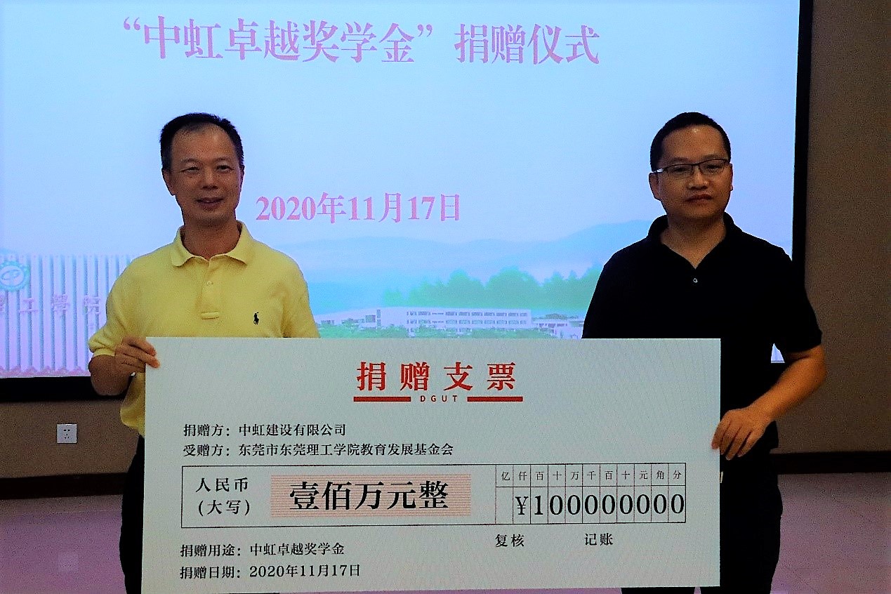 2020年11月17日,yl23455永利集团与中虹建设有限公司在松山湖校区学术会议中心301举行捐赠仪式。中虹建设有限公司董事长黎磊落、总经理黎晃厚等公司代表,永利y23455副校长李忠虹、yl23455永利集团党委书记李纠和院长郑愚等学院师生代表出席此次交接仪式。