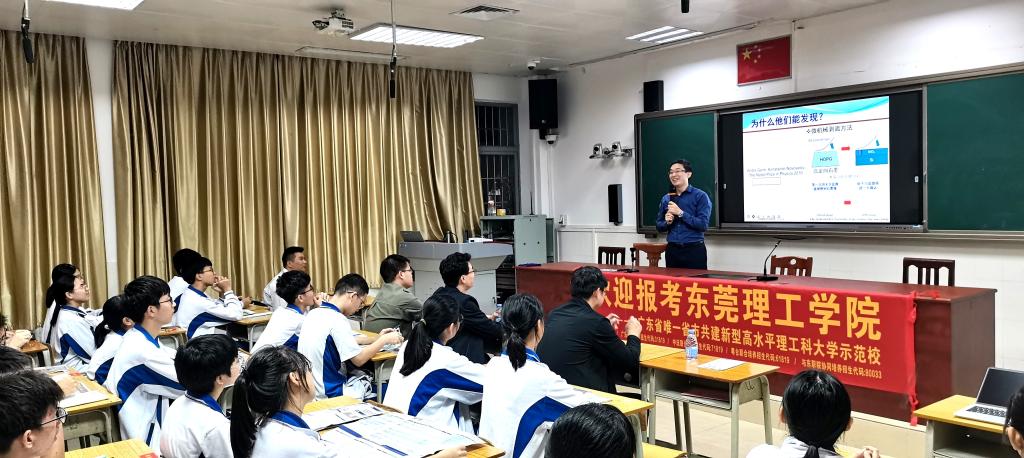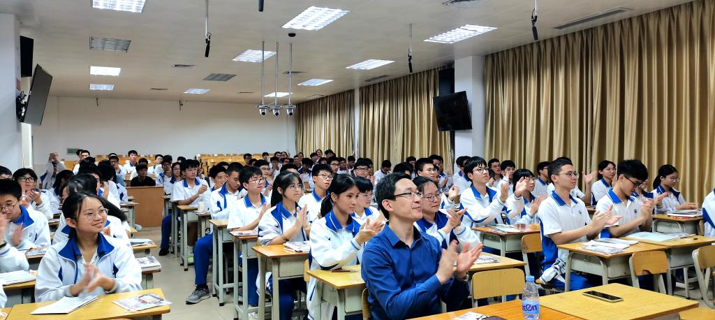 讲座结束后,阳江市第一中学教务处主任卢南山、高二年级组长曾德勇详细介绍了学校办学基本情况、学校发展规划及近年来高考录取情况等;随后,李衍亮主任向师生们介绍了我校近年的发展趋势、师资科研,人才培养,同时,重点向师生们介绍了本科招生新变化、报考攻略、咨询渠道,鼓励在场同学奋发向上,认真选择,考上理想大学。