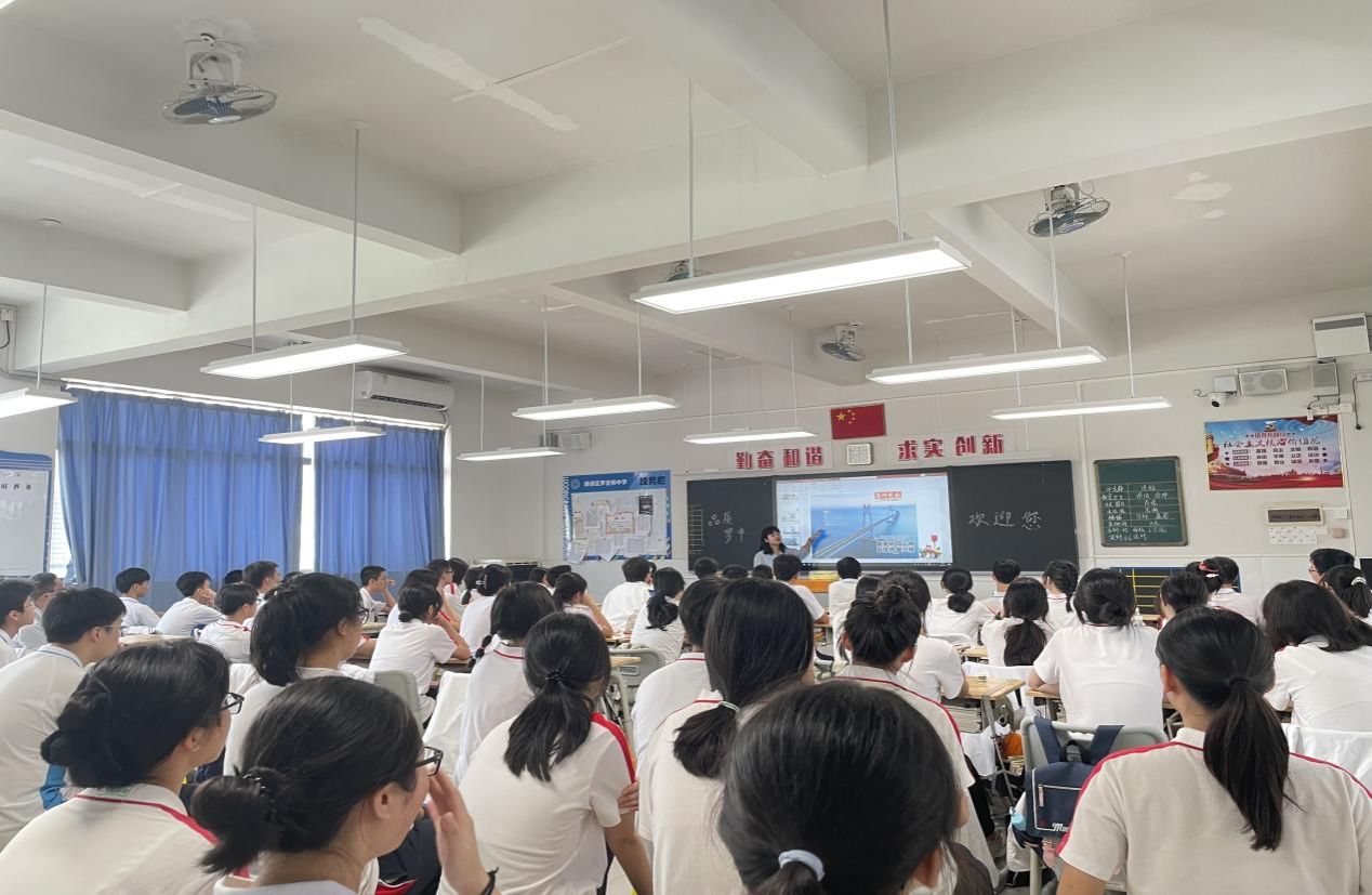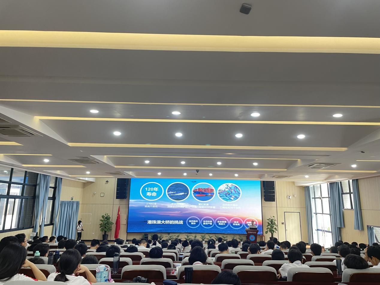余烈教授在科技节开幕式上为罗定邦中学师生带来主题为《跨越伶仃洋的国之重器》的讲座。讲座介绍了港珠澳大桥的建设和启示,余教授从“弘扬奋斗精神,实现重大跨越”“成就超级工程,必须苦干实干”“打造世纪工程,依靠众志成城”“铸就国之重器,坚持争创一流”“建设国家工程,必须凝心铸魂”等五个方面,向师生们讲解了他在港珠澳大桥工程建设中遇到的种种困难,讲述了建设者们如何克服重重技术难关,最终建成这一超级工程的伟大历程,让同学们感受到勇创世界一流的大国工匠精神和民族志气。