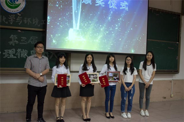 本次大赛由吴华盈主持。比赛初始,我院团总支副书记黄森源为本次活动致辞,他对同学们付出的努力表示肯定,并预祝各班的参赛微电影都能取得一个好成绩。紧接着,大赛播出了各班精心制作的微电影,让同学们回顾了自己的制作过程,同时,让他们感受到了他们的青春历程。作品展示完后,罗展琳师姐为大赛总结致辞,她指出,同学们制作的微电影质量都很高,但普遍存在一个问题,就是多少有些偏离本次心理微电影的主题,同时,她希望大家能够再接再厉,制作出更加优秀的作品。最终由嘉宾评委评出优秀作品:一等奖:15级工艺1班《跨出那一步》;二等奖:15级应化2班《我们曾经年少》、15级高材2班《谁的青春不迷茫》;三等奖:15级高材1班《我们》、15级应化1班《对不起,让你受委屈了》、15级环境2班《茧》。