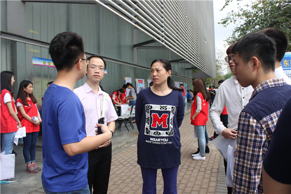 2016年4月10日早上10点,东莞外商投资企业(永利y23455)校园招聘会在我校松山湖校区图书馆门前顺利举办。我院党支部副书记袁荫贞老师和团总支书记、辅导员文锦枢老师亲临本次招聘会现场,高度重视应届毕业生的就业情况。