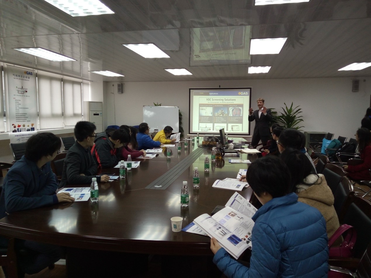 2016年3月15日上午德国G.A.S.公司总裁 Thomas博士来访我院,并在学院会议室做学术报告,题目为“气相离子迁移谱技术的研究进展与应用”,并与我院教师进行学术交流。