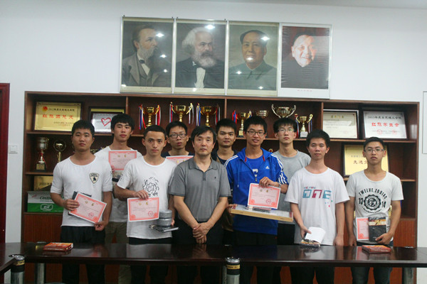 经过前期预赛一轮又一轮的角逐,2014年12月12日晚上6:30进行了总决赛。比赛期间,各位棋手严格遵守比赛规则,坚持友谊第一,比赛第二的原则,赛出风格,赛出水平,为我们呈现出一场场精彩比赛。经过一轮又一轮的比拼,最终比赛结果:林惠东获得中国象棋一等奖,赖燕辉,李健获得二等奖,姚超、黄明虎、沈敏琪获得三等奖:梁康海获得围棋一等奖,李志强获得二等奖,林旭获得三等奖。最后,环建学院党总支君光书记为以上获奖同学颁奖并合影留念。