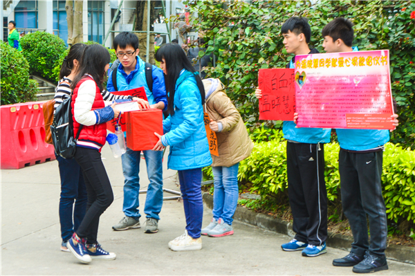 2015年3月12日至13日,永利y234552013级应用化学(化工工艺)2班分别在莞城校区与松山湖校区为身患急性白血病的温晓慧同学举行爱心募捐活动,在校园里谱写出了温暖动人的爱的乐章。