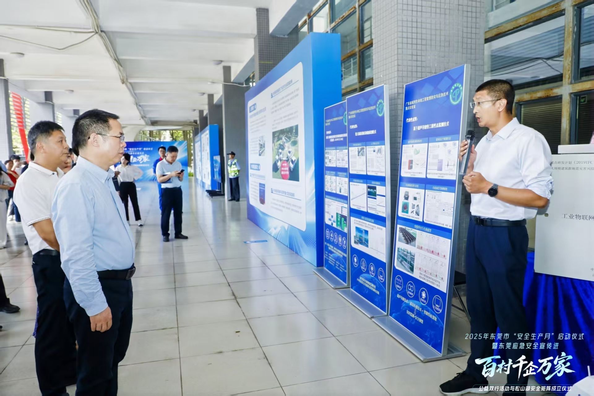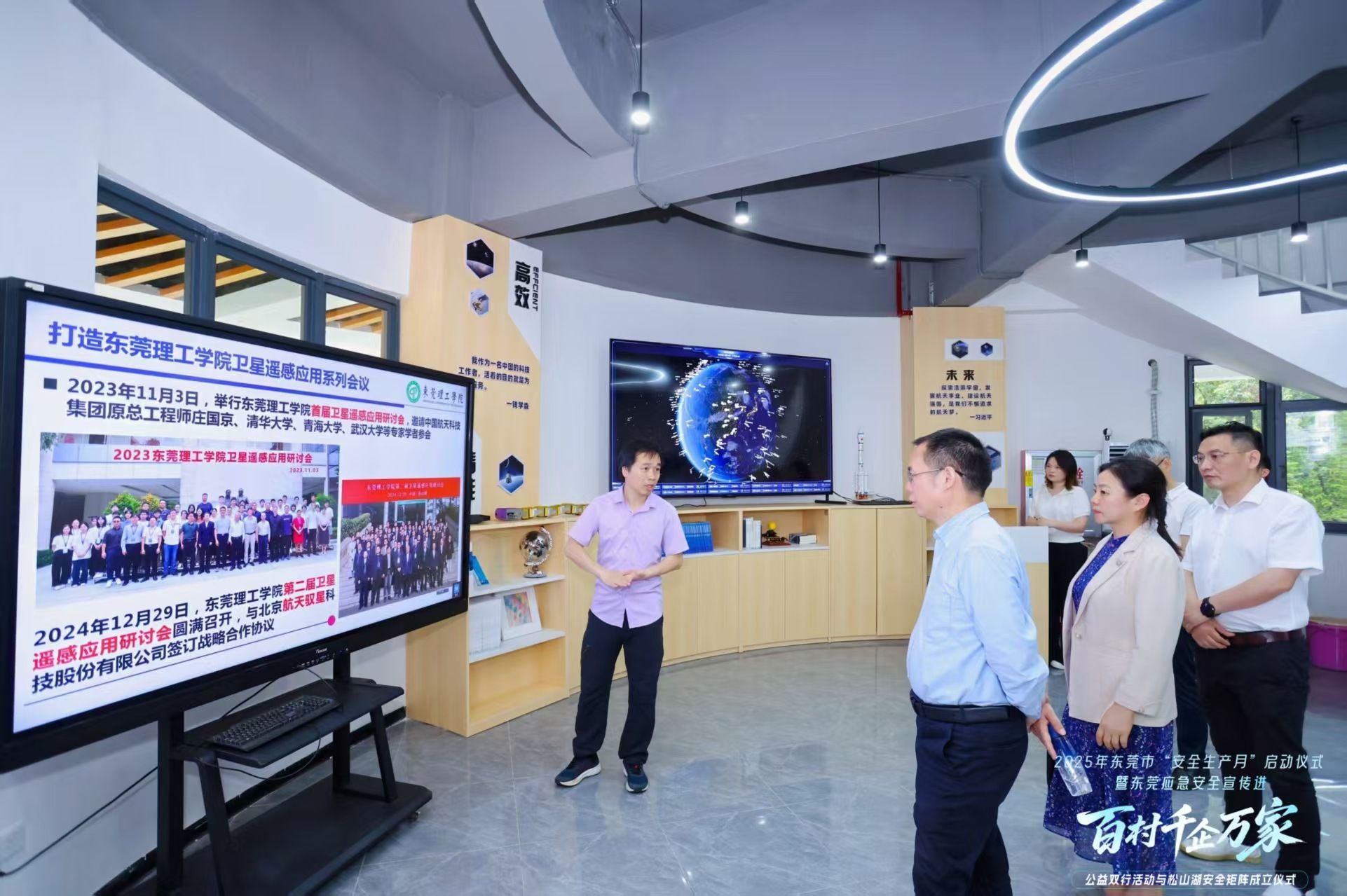 仪式上,松山湖安全矩阵正式启动。该矩阵整合高校、企业、社区资源,将通过技术共享、数据互通、应急演练等方式,构建覆盖全域的安全防控网络。张伟伟教授协同省重点实验室及卫星地面接收站技术团队,全程协助接待到访的政府及行业嘉宾,展示了我校在智能监测、灾害预警等领域的科研成果,为安全矩阵的技术赋能提供支撑。