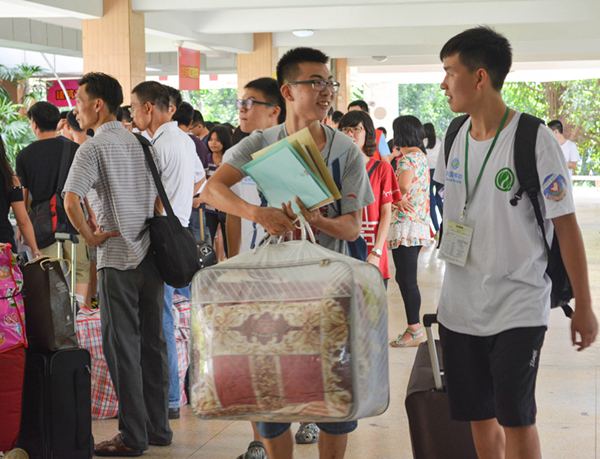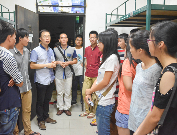 经过一天的迎新工作,学院2014级新生悉数到校,迎新工作基本完成。晚上,新生宿舍灯火通明,我院团总支书记、辅导员文锦枢老师和黄伟涛老师在松山湖校区探访了14级化工卓越班的新生,并与其讨论了新生如何融入集体等有关问题。同时在莞城校区,14级助理班主任陪同各班班主任到宿舍探望,帮助新生解决生活上的问题。老师对新生的无微不至的关怀令初至学校的新生倍感温暖。