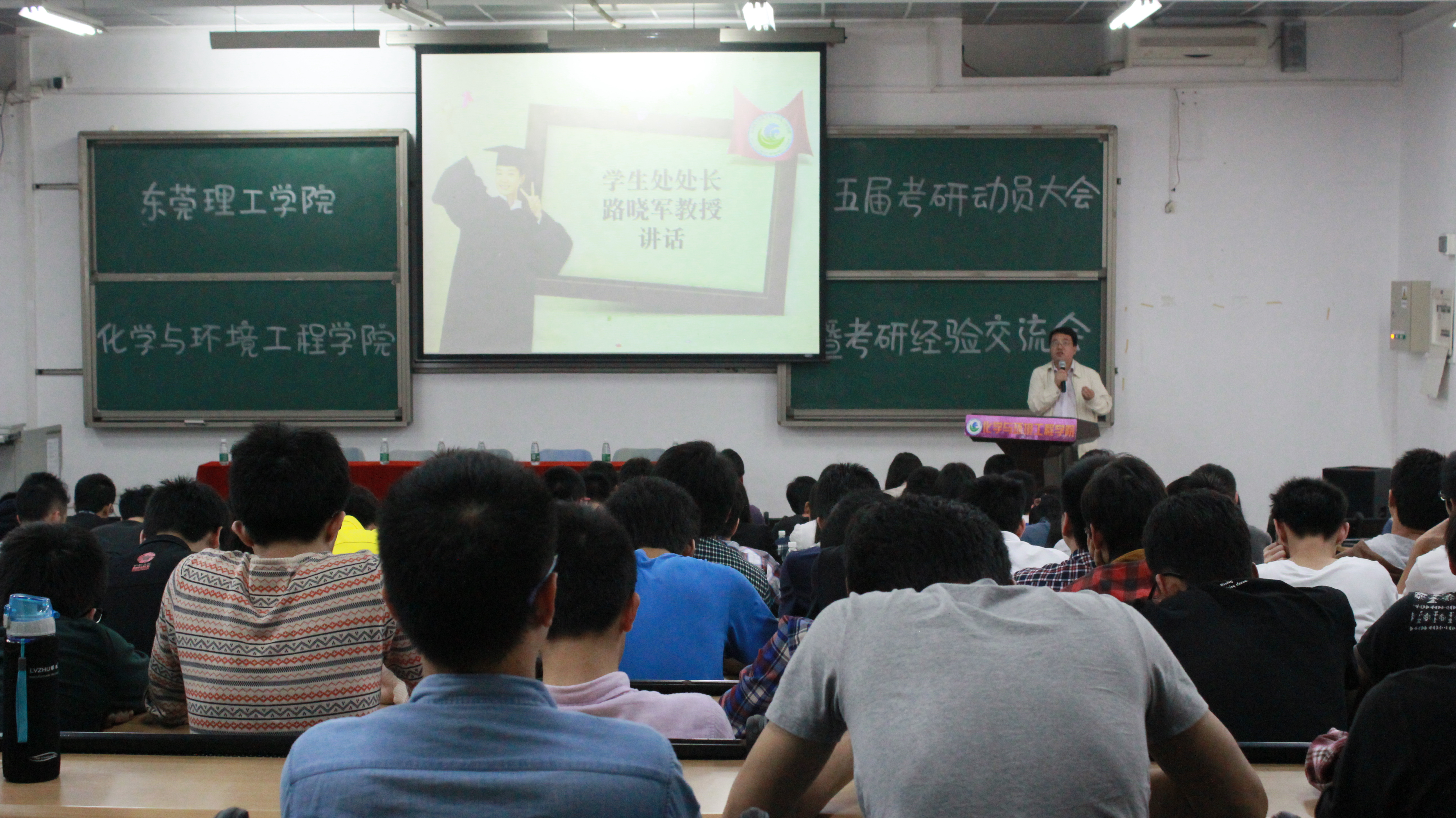 2014年5月8日,第五届yl23455永利集团考研经验交流会暨考研动员大会在松山湖校区教学楼6E105顺利召开。出席本次会议的嘉宾有学生处处长路晓军教授,环建学院党总支书记君光老师,副书记袁荫贞老师,黄相璇博士,团总支书记、辅导员文锦枢老师,08届考研成功毕业生李文杰。另外,与会人员还有2014年28名成功考研的学生以及大三全体学生。