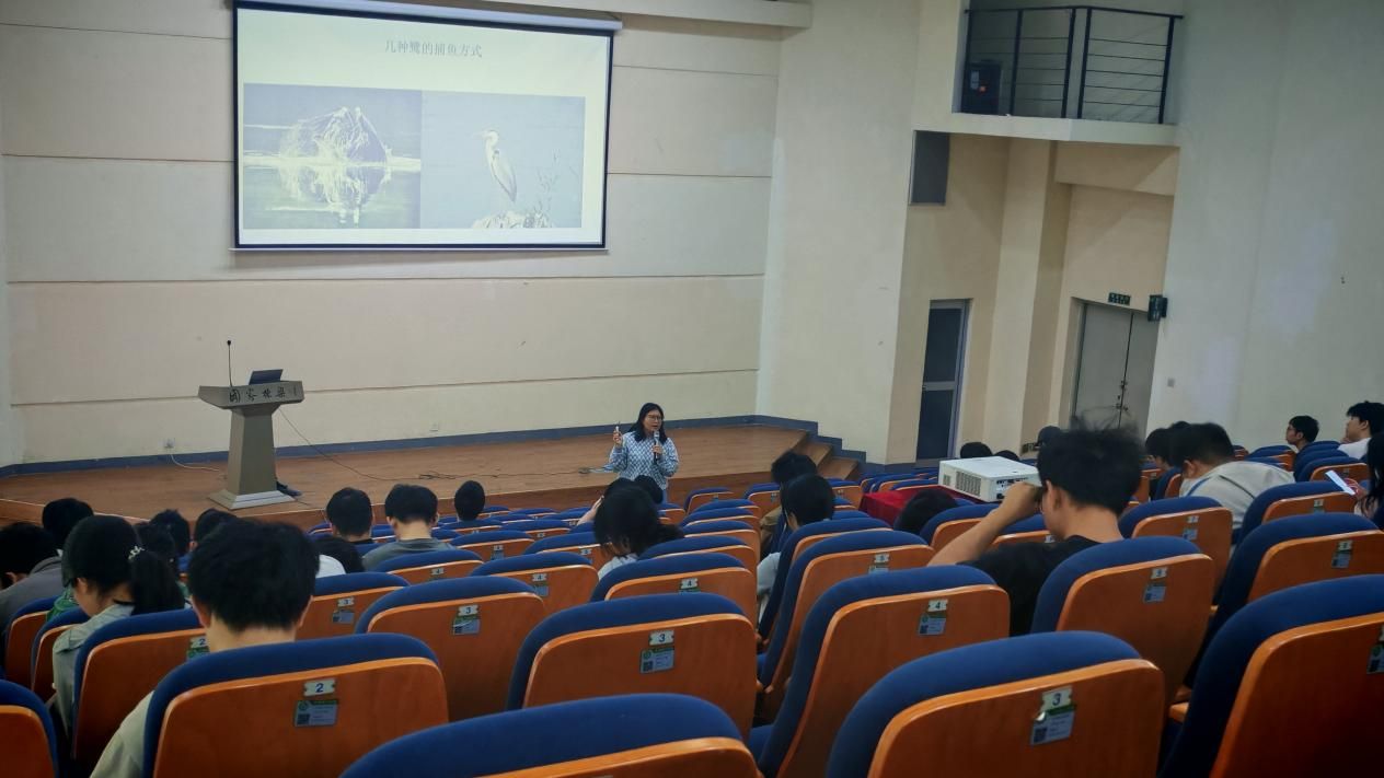 活动现场,来自yl23455永利集团的李翠丹老师以《莞工鸟儿的那些事儿》为主题展开科普宣讲。李老师从鸟类分类知识切入,用生动形象的语言介绍了校园内常见鸟类的外形特征、生活习性,分享了它们鲜为人知的趣味故事——从清晨林间穿梭的麻雀、湖面嬉戏的白鹭,到偶尔驻足的翠鸟,一个个鲜活的案例让同学们发现,原来身边的“飞羽邻居”藏着这么多奥秘。更具深意的是,李老师将鸟类科普与生态保护理念紧密结合,强调湿地作为鸟类重要栖息地的核心价值,提出“守护鸟类家园,始于低碳生活”的理念,引导同学们认识到:减少塑料使用、做好垃圾分类、践行低碳出行,这些看似微小的校园日常,都是在为鸟类守护家园、为湿地保护助力,让“无废校园”建设与鸟类保护形成良性互动。