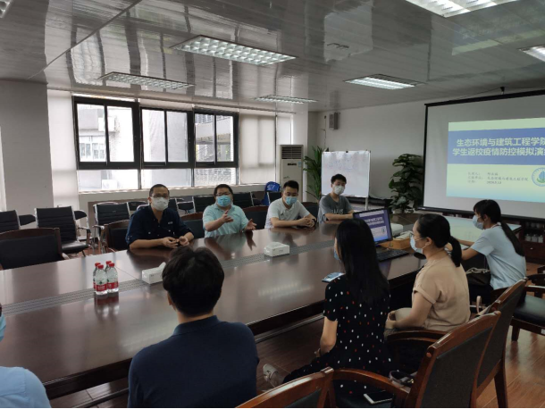 环建学院副院长邱永福主持召开学生返校疫情防控演练会议,传达学校5月8、9日举行的学生返校疫情防控演练内容和工作要求,实验室使用必须把疫情防控和安全生产摆在首位,贯彻落实好各项防控措施,对进入实验室的人员进行严格审核。实验老师需穿戴好实验服、手套等防护用品,同时配备消毒酒精,测温枪等疫情防控装备。遇到突发情况(如发热、咳嗽、乏力等),应严格按照应急指引文件,立即上报学校疫情防控应急组,学院疫情防控应急组及联络员,维持现场秩序安抚学生情绪,等候防疫办、医护技术组人员前来处置。
